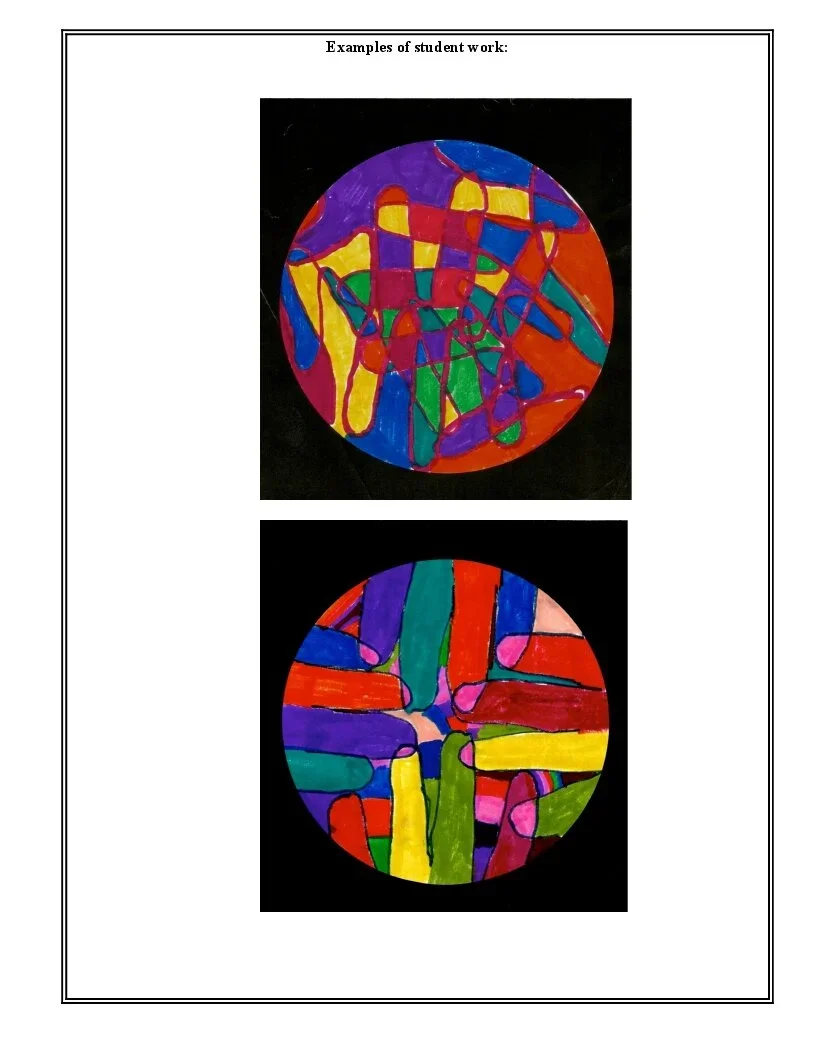 This lesson uses the students hand as they rotate it around a circle. They outline their hand at a 90 degree angle four times to start. Then they rotate their hand at a 45 degree angle four times to complete the corner angles. When they have outlined their hand they find patterns and fill in the patterns with different color markers. Student may also use different color markers for each outline to create a more interesting design.